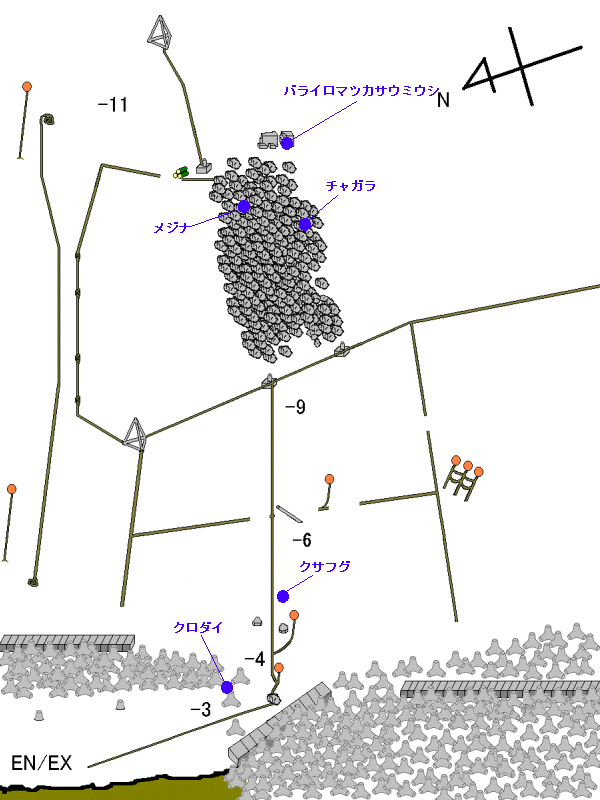 他はメインロープ付近ではサビハゼの幼魚がホバリングしていたり、手前のテトラ裏周辺