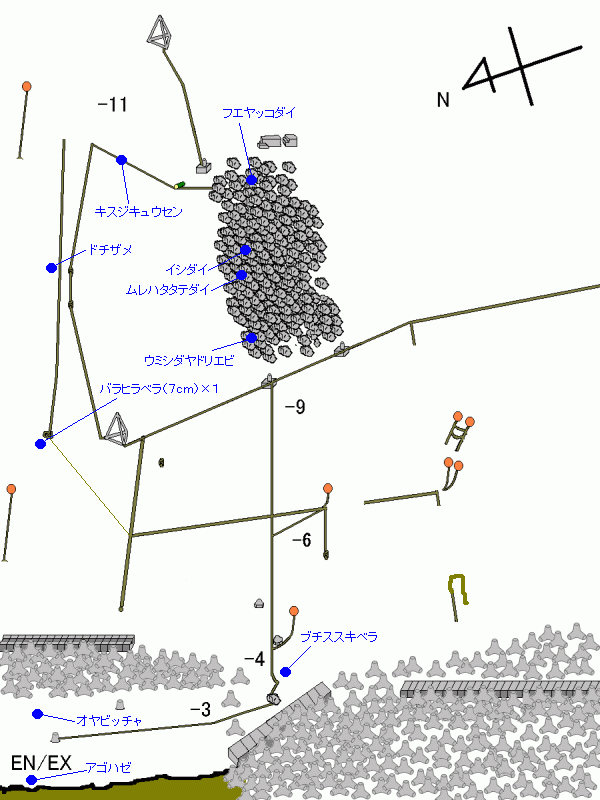 出てきませんでしたので、それ以上深く潜っているか、垂直に潜らないか!?この場所は